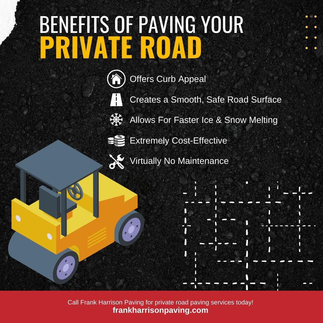 Let's face it, a paved road just looks good, so when you partner with Frank Harrison Paving for your private road paving service, you'll be left with a beautiful surface that will serve you well for many, many years. It will add value to your property and be a great convenience for when guests arrive.